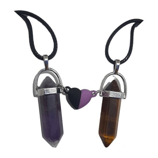 Collares Cuarzo Corazón Magnético Amatista & OjoTigre
