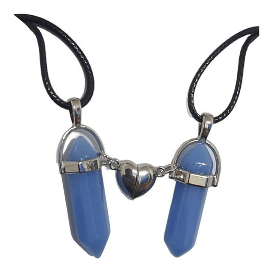 Collares Cuarzo Corazón Magnético Azul Luminosos