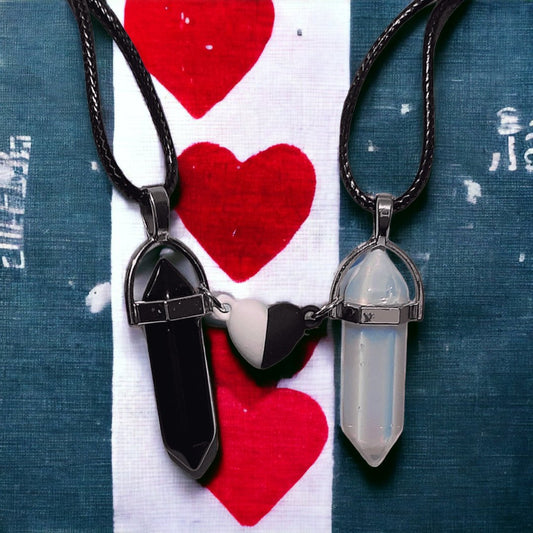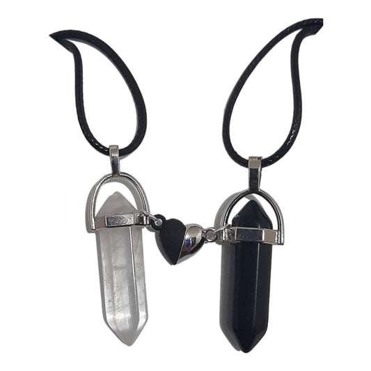 Collares Cuarzo Corazón Magnético Obsidiana & Crystal
