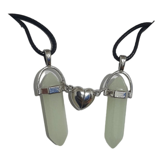 Collares Cuarzo Corazón Magnético Luminosos Azul Verdoso