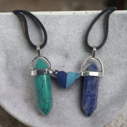Collares Cuarzo Corazón Magnético Turquesa & Sodalita