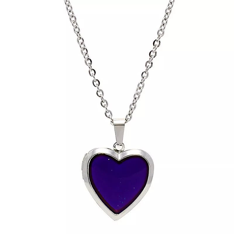 Elegante collar en forma de corazón, es además un relicario que cambia de color.
