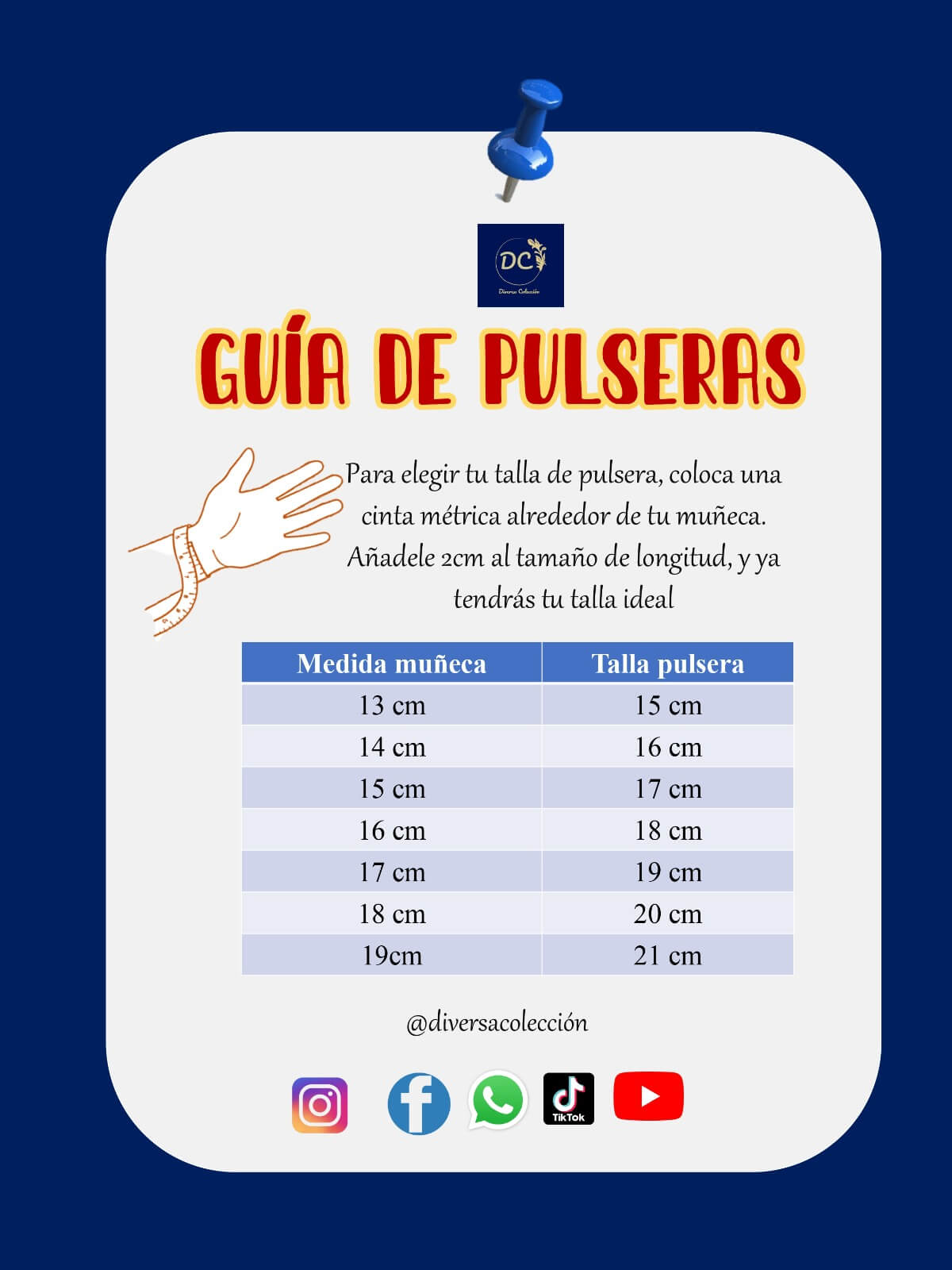 - Talla ajustable entre 16 y 22 cm de circunferencia.